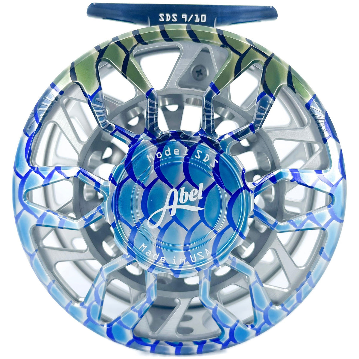 Abel Rove 5/7 Deep Blue w/Platinum Drag Knob, Platinum Handle, 239 Drag Plate & 239 Flies Bre Drake Redfish Art(IN STOCK)