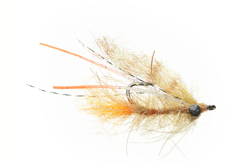 It also features orange innards to imitate a spawning crab. This fly was designed to target Permit, triggerfish, and large Bonefish.